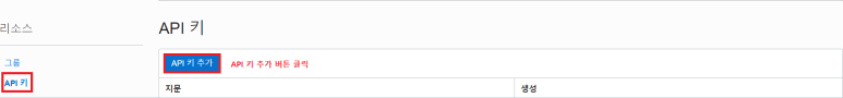 ②API 키 추가 화면 입력
